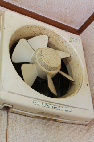| 換気扇を取り外し、洗剤で漬け置き洗浄します。 | |